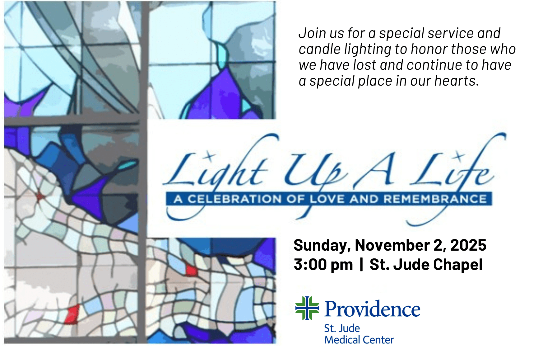 Light Up a Life marks a special time of year that we stop and take a moment to remember those in our lives who have left an indelible mark. This year's Light Up a Life celebration will be held on Sunday, November 2, 2025, in the St. Jude Chapel. We hope you will join us for this special service and candle lighting.